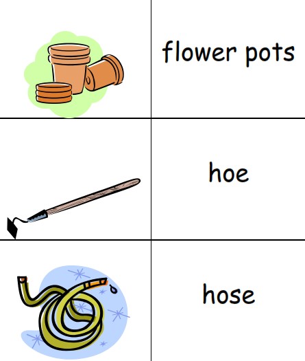 Free printable picture dictionaries for young writers and ESL students including gardening-theme vocabulary