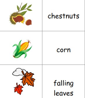 Free printable picture dictionaries for young writers and ESL students including fall-theme vocabulary
