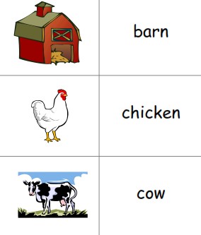 Simple farm-theme matching activity for beginning readers.