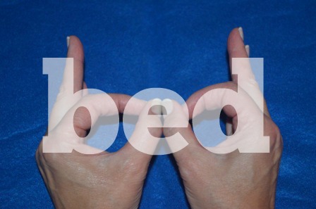 My favourite memory device is to make a “bed” with the child’s fingers. Imagine making two small circles with the thumbs and forefingers, and pointing the remaining fingers upward. Push the two circles together to make a “bed” (minus the “e”). The left hand makes the “b” and the right hand makes the “d.” It looks like this: “bd.” “b” is at the beginning of “bed,” “d” is at the end of bed.