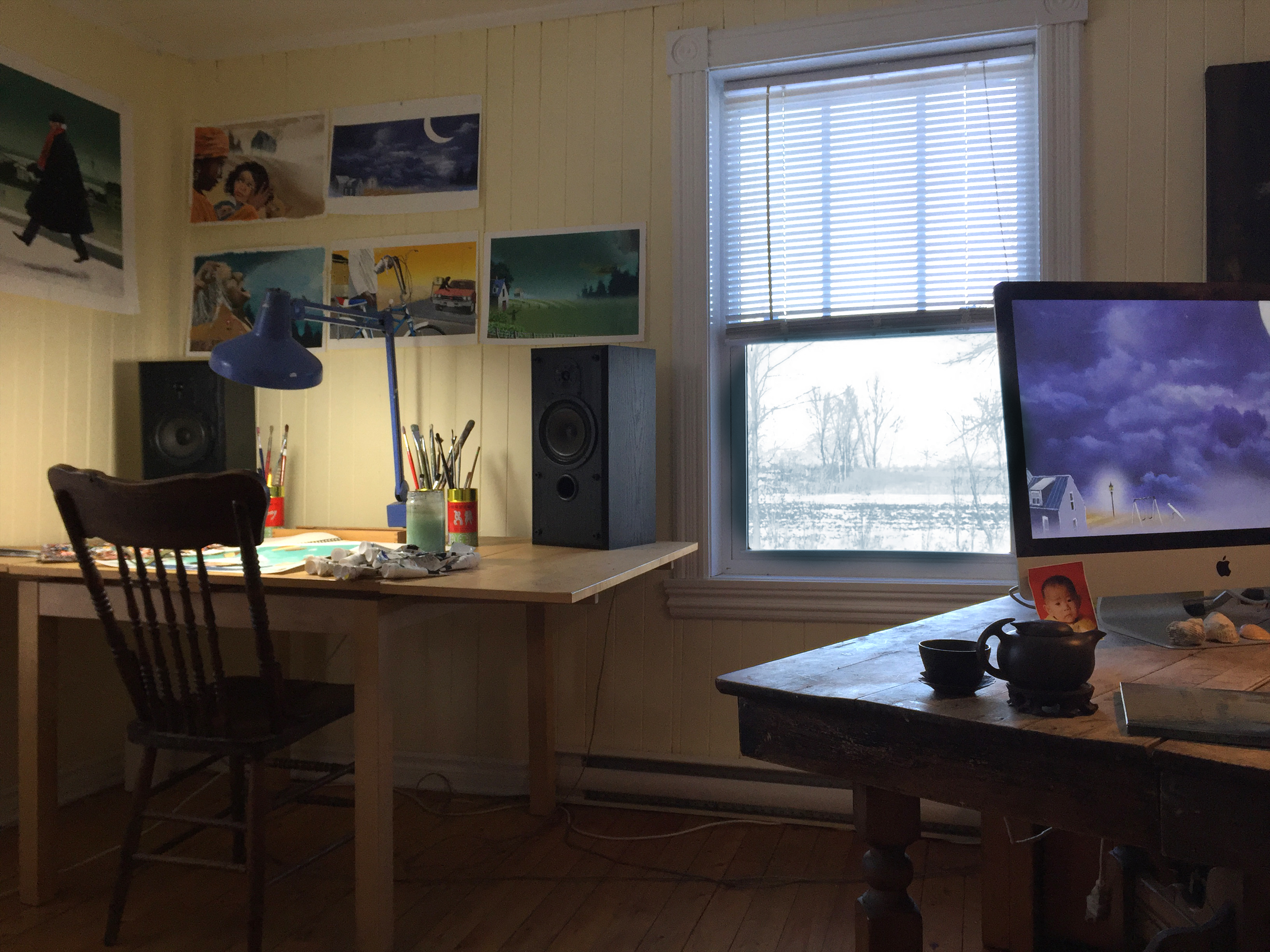 If we were watching over your shoulder as you work on a book, what would we see? Where do you work? What does your writing / illustrating process look like?